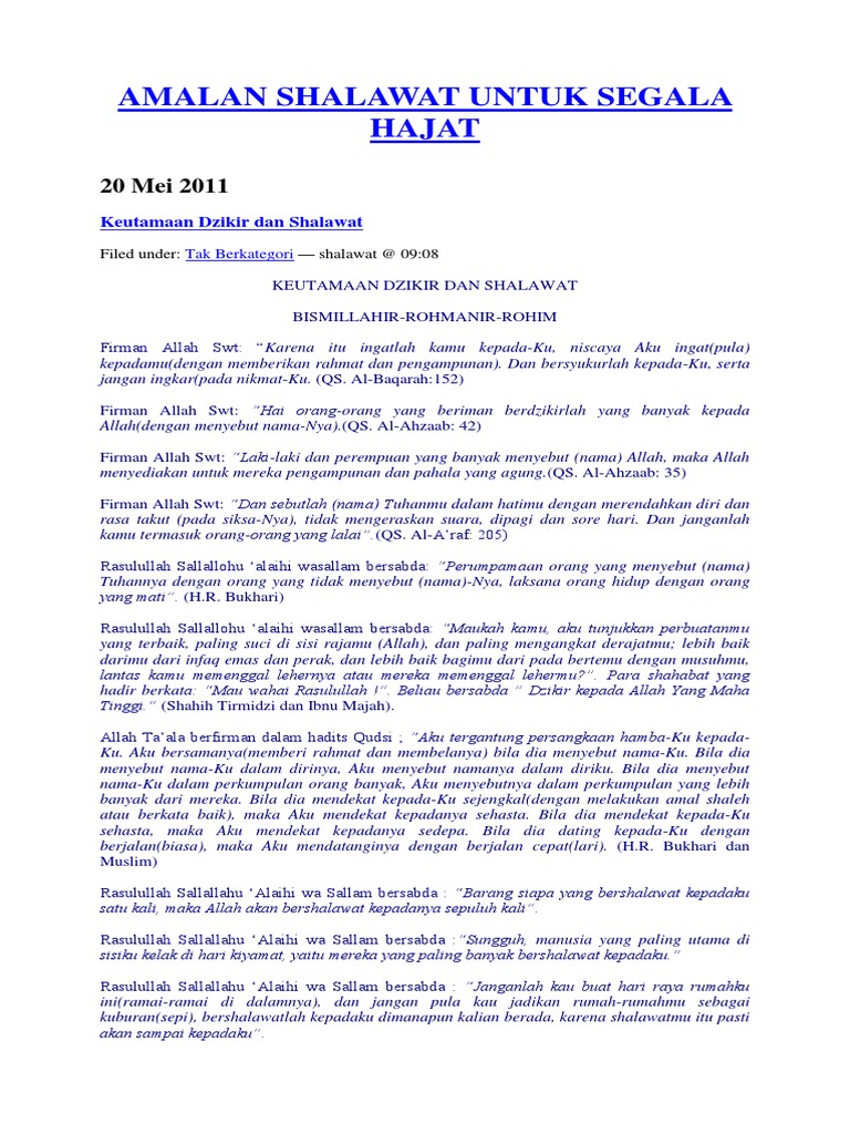 Amalan Sholawat Untuk Segala Hajat - Ingin Hajat Terkabul Bacalah Shalawat Seribu Kali Setiap Hari : Dahsyat nya sholawat munjiyatsholawat munjiyat adalah salah satu bacaan doa yang biasa dibaca setelah solat fardhu atau pada berbagai pertemuan.